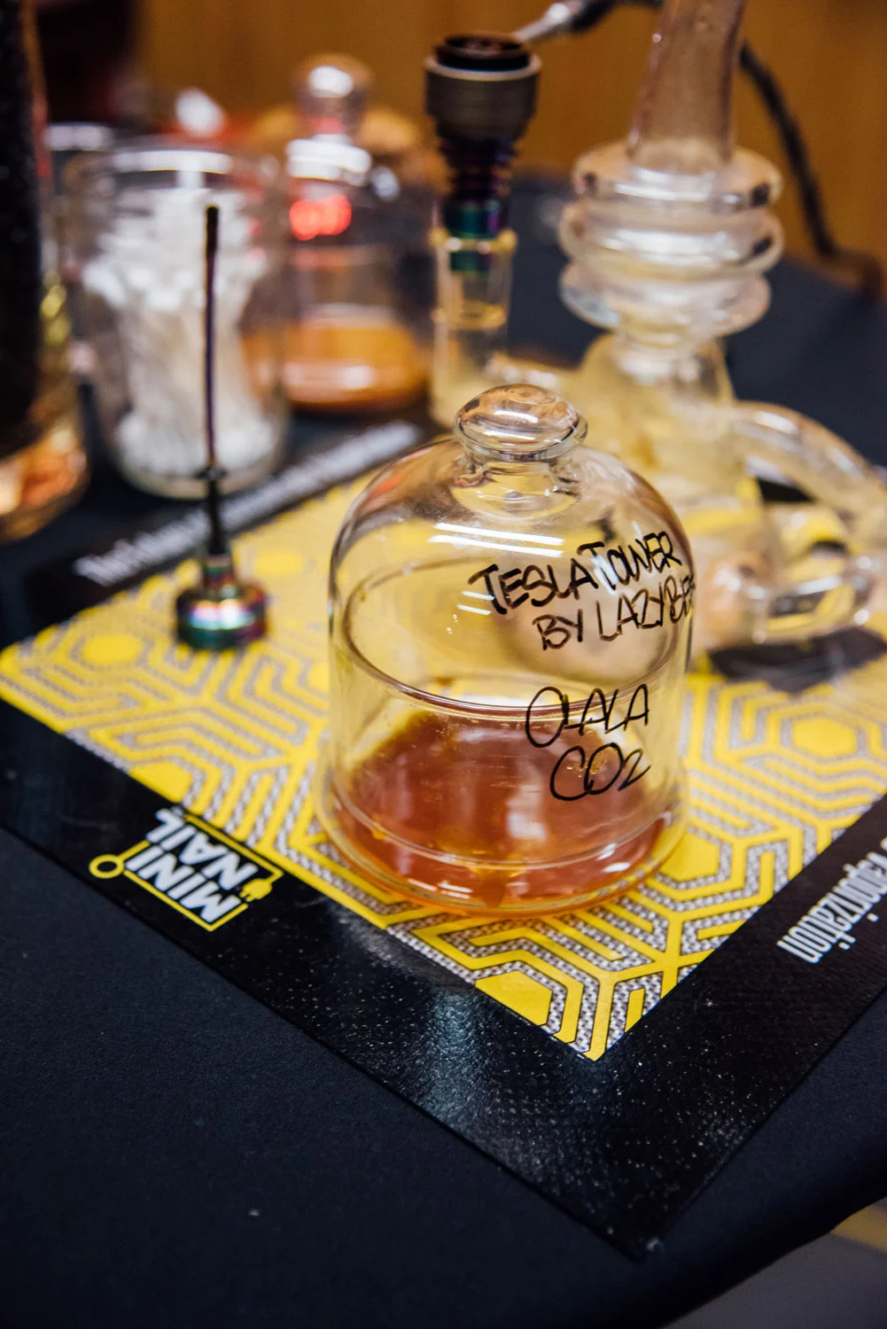 The evening started with dabs from our friends at Olala. They are one of several companies we work with to process our flower into oil, and love the work they do. We especially loved their flavorful extracts with our Tesla Tower.